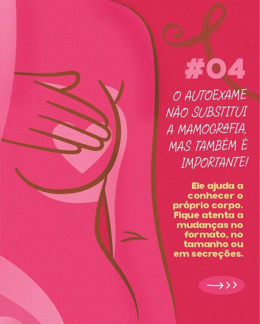 A iniciativa também destacou quatro pilares fundamentais sobre o câncer de mama: a importância da consulta anual ao ginecologista, o incentivo a um estilo de vida saudável, a realização da mamografia a partir dos 40 anos (ou antes, em casos de histórico familiar), e o autoexame como ferramenta de autoconhecimento. Embora não substitua exames clínicos, o autoexame ajuda a identificar alterações no corpo que merecem atenção.