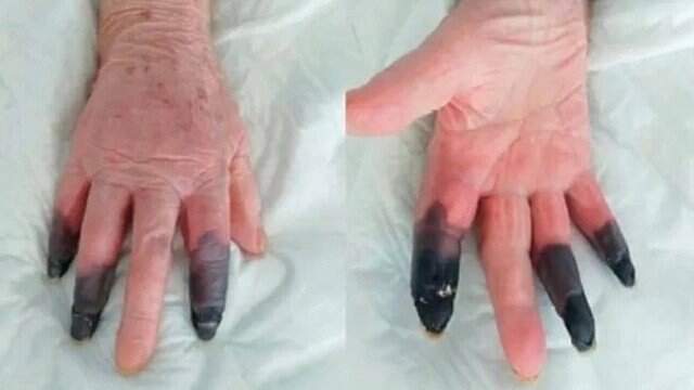 Os médicos que fizeram o relatório do caso disseram que ela tinha gangrena seca no segundo, quarto e quinto dedos da mão direita. Também conhecida como necrose, trata-se de uma condição séria em que a perda de suprimento de sangue faz com que o tecido corporal morra e fique preto.