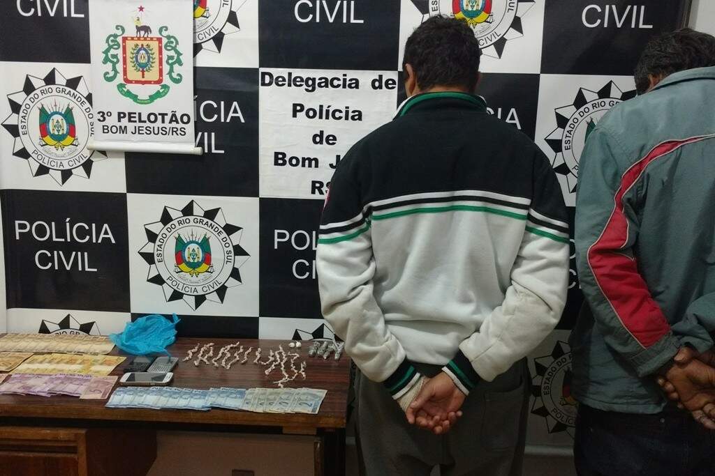 Pai e filho foram presos por tráfico de drogas e associação para o tráfico. As prisões foram efetuadas por agentes da Delegacia de Polícia de Bom Jesus, neste sábado (16), durante cumprimento de mandado de busca e apreensão expedido pelo Poder Judiciário, com o apoio de policiais militares.