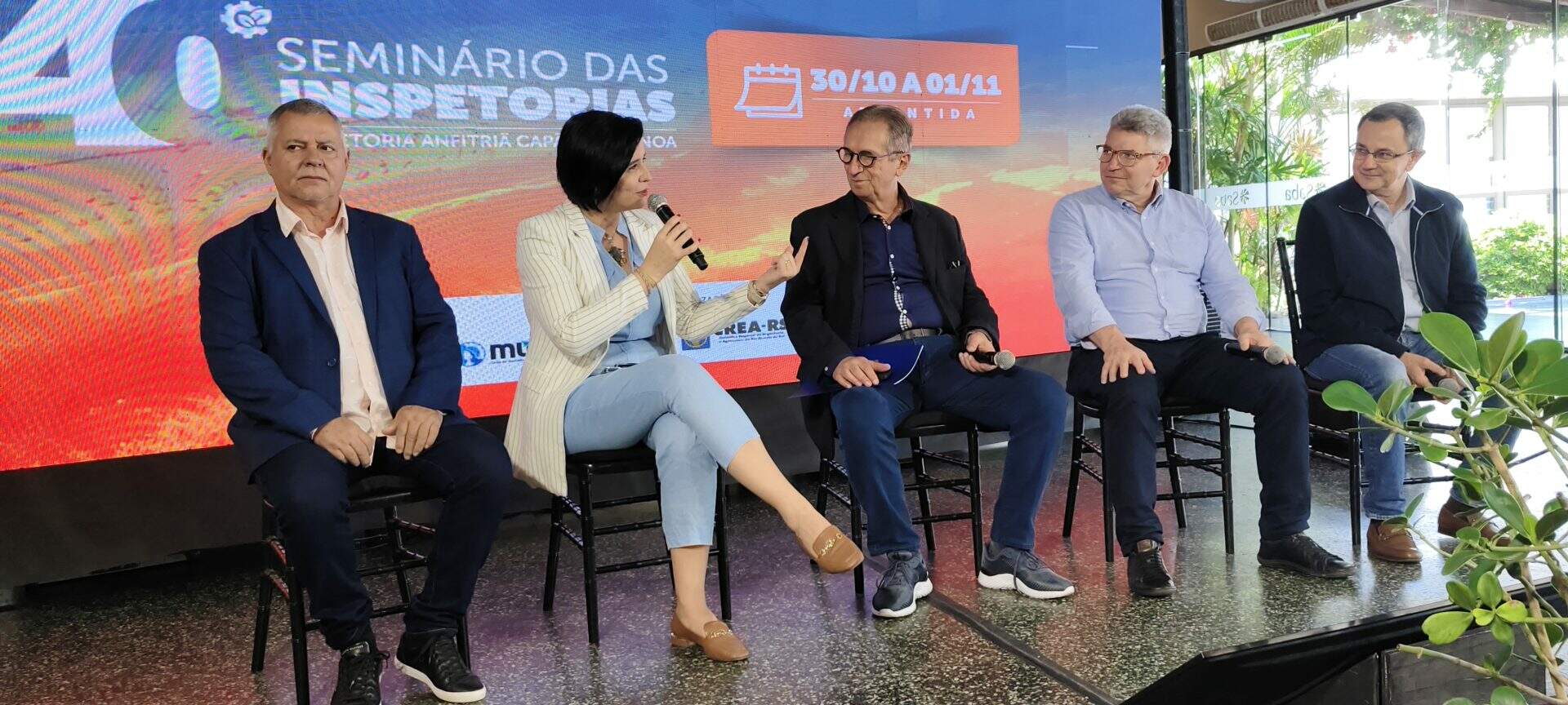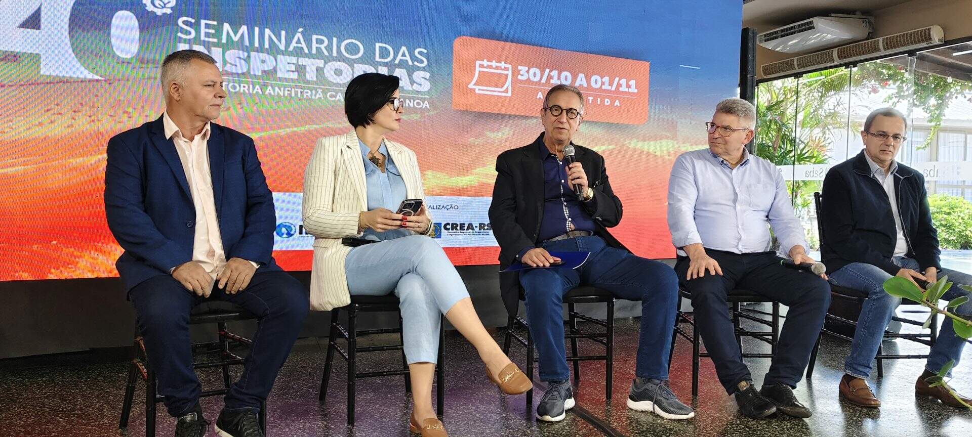 Foto: O SulEncerrando a programação do 40º Seminário das Inspetorias do CREA-RS, no sábado (1º), o painel “Desburocratização do Serviço Público” reuniu autoridades e especialistas para debater caminhos para uma gestão mais eficiente, transparente e voltada ao desenvolvimento regional. O encontro aconteceu no auditório da Sociedade dos Amigos do Balneário de Atlântida (SABA), entidade anfitriã do evento, e foi coordenado pelo engenheiro civil, apresentador do programa Pampa Debates e vice-presidente da Rede Pampa de Comunicação, Paulo Sérgio Pinto, ao lado da presidente do CREA-RS, engenheira ambiental Nanci Walter.