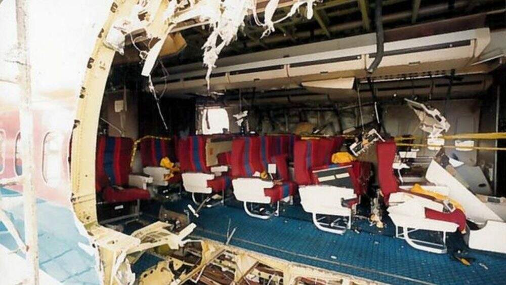 “Mas, de repente, a gente passou de uma situação em que tudo estava perfeitamente normal para tudo terrivelmente errado. Em um nanossegundo houve uma explosão, uma descompressão, e tudo o que não estava preso ao chão ou a um assento estava suspenso no ar. Eu lembro de ver o lustre que ficava pendurado em cima da escada que levava para a primeira classe, no andar superior, sendo arrancado.”