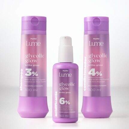 Nos cabelos, a Panvel Lume Glycolic Glow traduz os benefícios do ácido glicólico em fórmulas que cuidam da raiz às pontas. O shampoo limpa profundamente e prepara o couro cabeludo, enquanto o condicionador ajuda a reduzir a porosidade e promove a selagem das cutículas para fios mais alinhados e disciplinados. O tratamento se completa com o acidificante, que equilibra o pH e devolve vitalidade, maciez e brilho luminoso, garantindo cabelos saudáveis e com movimento natural.