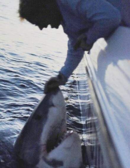 Pescador faz carinho em tubarão branco de 1 tonelada nos Estados Unidos