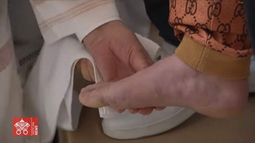Um vídeo divulgado pelo Vaticano mostrou o papa lavando e beijando os pés de 12 detentos de várias idades, incluindo uma mulher que parecia ser idosa.