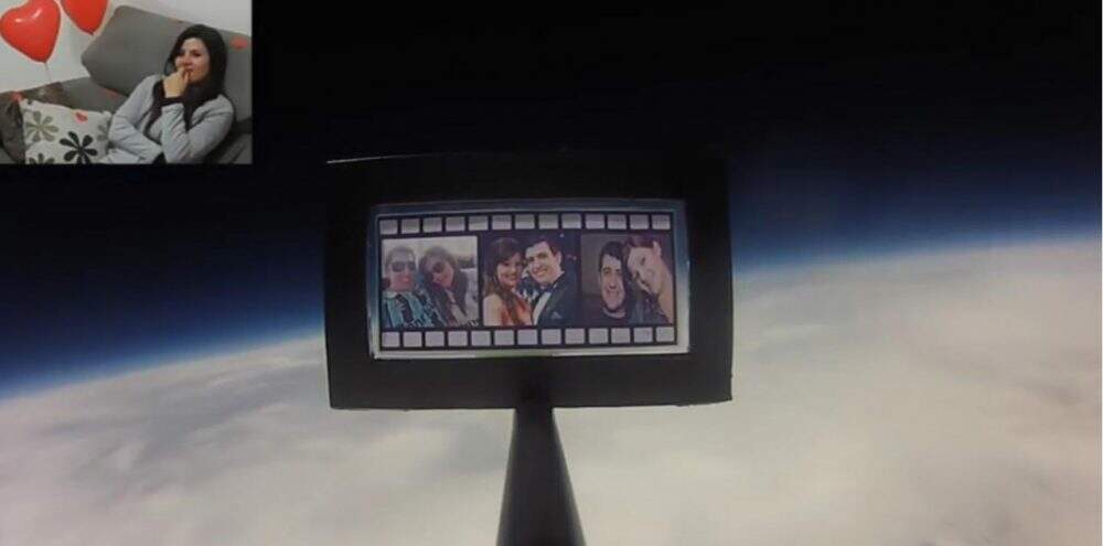Para concretizar a ideia, Tiago entrou em contato com um grupo de amigos de Pitangueiras, no interior de São Paulo, que tem um projeto no qual enviam objetos para as camadas da atmosfera. O noivo, então, teve de arranjar a desculpa perfeita para levar a namorada até Pitangueiras.