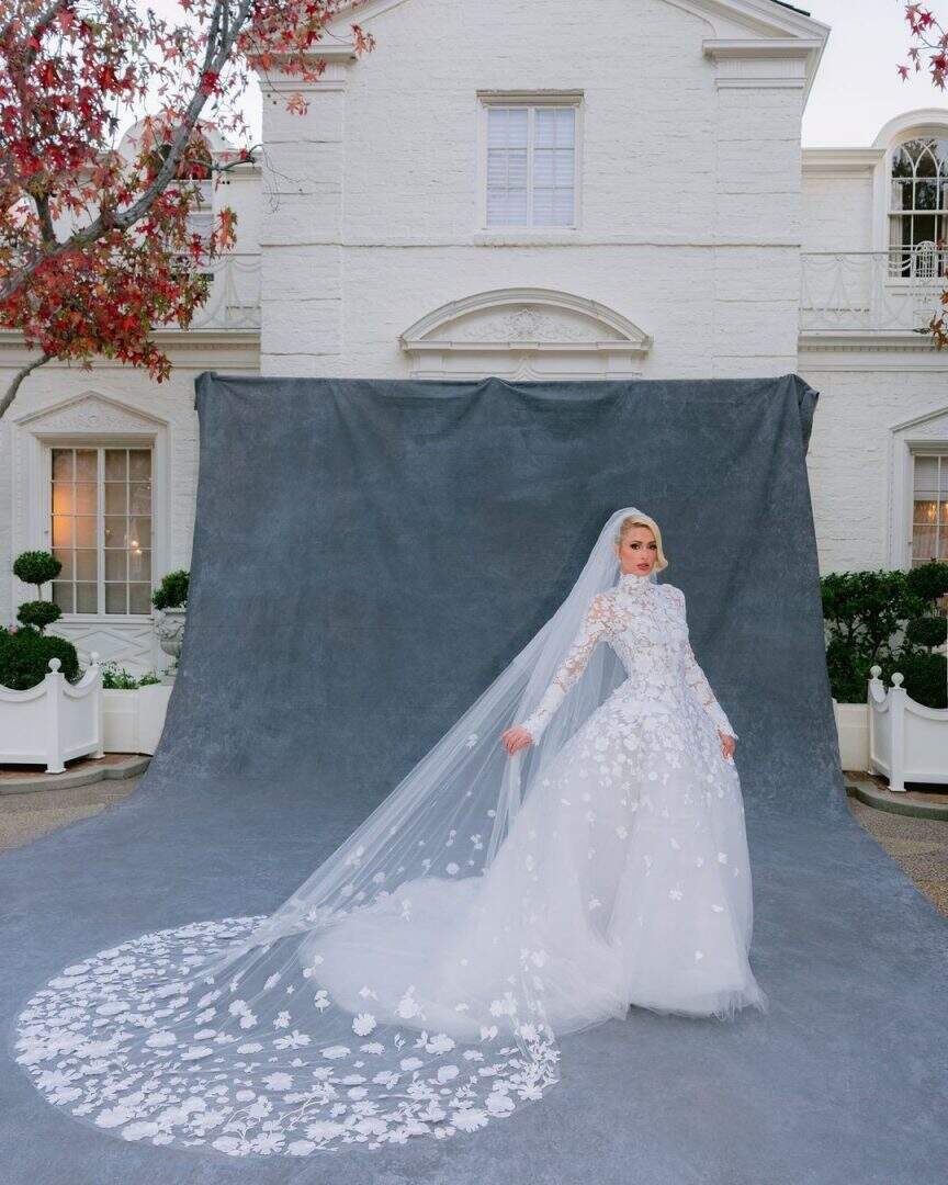 Foto: Reprodução/InstagramParis Hilton, de 40 anos, compartilhou no Instagram fotos inéditas de seu casamento com Carter Reum, inclusive um registro de corpo inteiro do vestido Oscar de la Renta com o qual disse “sim” ao amado – até agora ela só tinha mostrado um close seu no grande dia. “Esposa para a vida”, avisou a socialite, nessa sexta-feira (12).