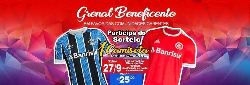 Durante a ação, serão sorteadas uma camiseta do Inter e outra do Grêmio autografadas por jogadores dos clubes. Para participar, basta acessar o site http://www.grenalbenef.site e dar a sua contribuição. O dinheiro arrecadado será destinado a famílias carentes.