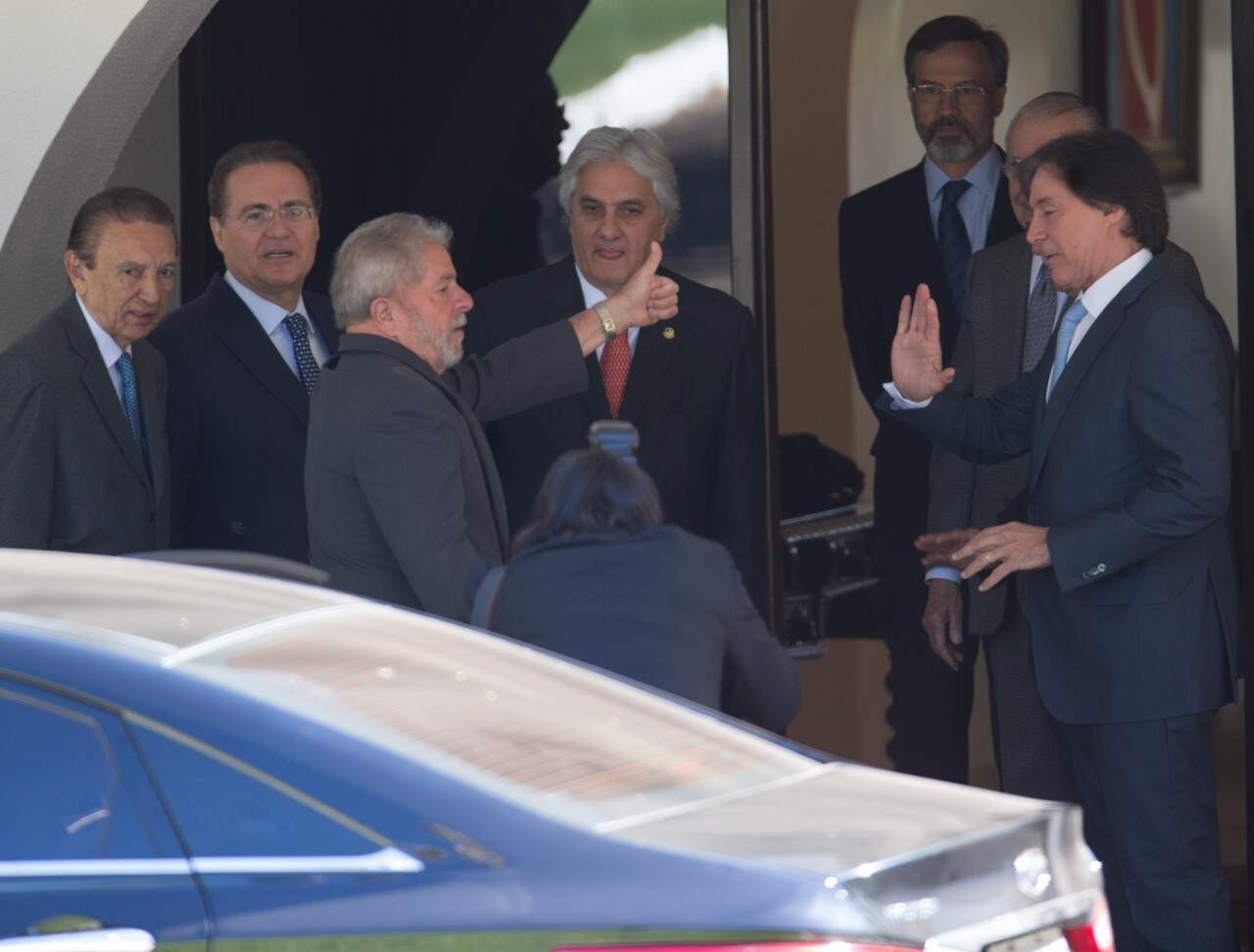 O ex-presidente Luiz Inácio Lula da Silva chegou, na manhã da terça-feira (30), à residência oficial do presidente do Senado, Renan Calheiros (PMDB-AL), em Brasília, onde realizou reunião de avaliação da conjuntura política. O ex-presidente petista estava acompanhado de Paulo Okamotto, diretor do Instituto Lula. Participaram do encontro os peemedebistas José Sarney (AP), Romero Jucá (RR), Eunício Oliveira (CE) e Edison Lobão (MA), além dos senadores petistas Jorge Viana (AC) e Delcídio do Amaral (MS).
