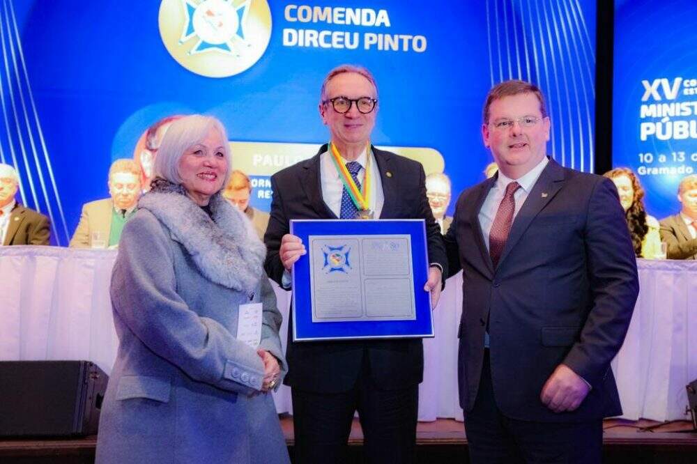 O 15º Congresso Estadual do Ministério Público, promovido pela Associação do Ministério Público do Rio Grande do Sul (AMP/RS), com apoio institucional do Ministério Público do Rio Grande do Sul (MPRS), proporcionou nesta quarta-feira (10), uma homenagem a figuras que se destacaram no desenvolvimento e na defesa do MPRS. Através da Comenda Dirceu Pinto, o vice-presidente da Rede Pampa, Paulo Sérgio Pinto foi um dos agraciados. A cerimônia ocorreu em Gramado, na Serra Gaúcha.