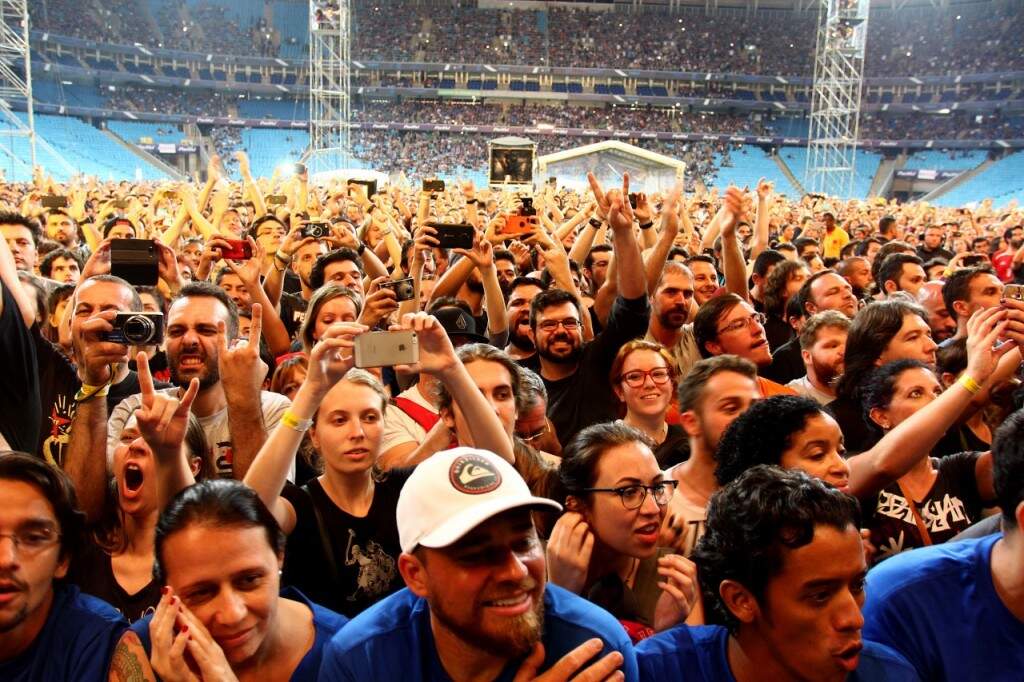 O primeiro show no Brasil do grupo Pearl Jam reuniu em Porto Alegre 32 mil pessoas na Arena do Grêmio, na quarta-feira (11) à noite.