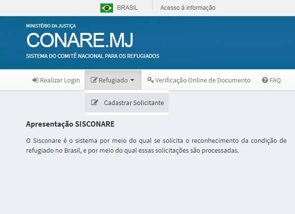 As pessoas que já foram aceitas como refugiados poderão usar o Sisconare para atualizar as informações pessoais.