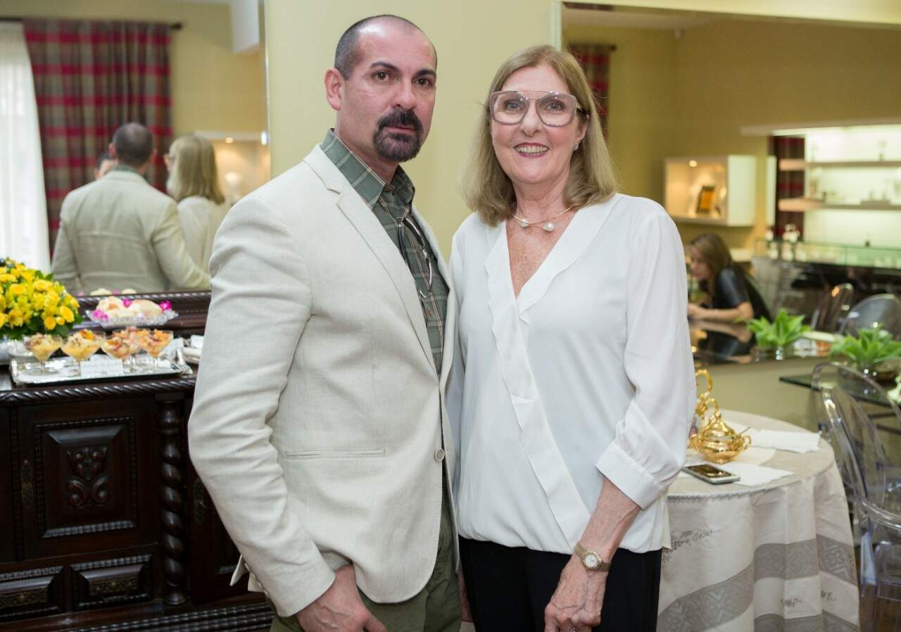 Betinha Schultz, que promoveu o lançamento da coleção Trésors, e Sérgio Pacheco. (Foto: Tiago Trindade/Divulgação)