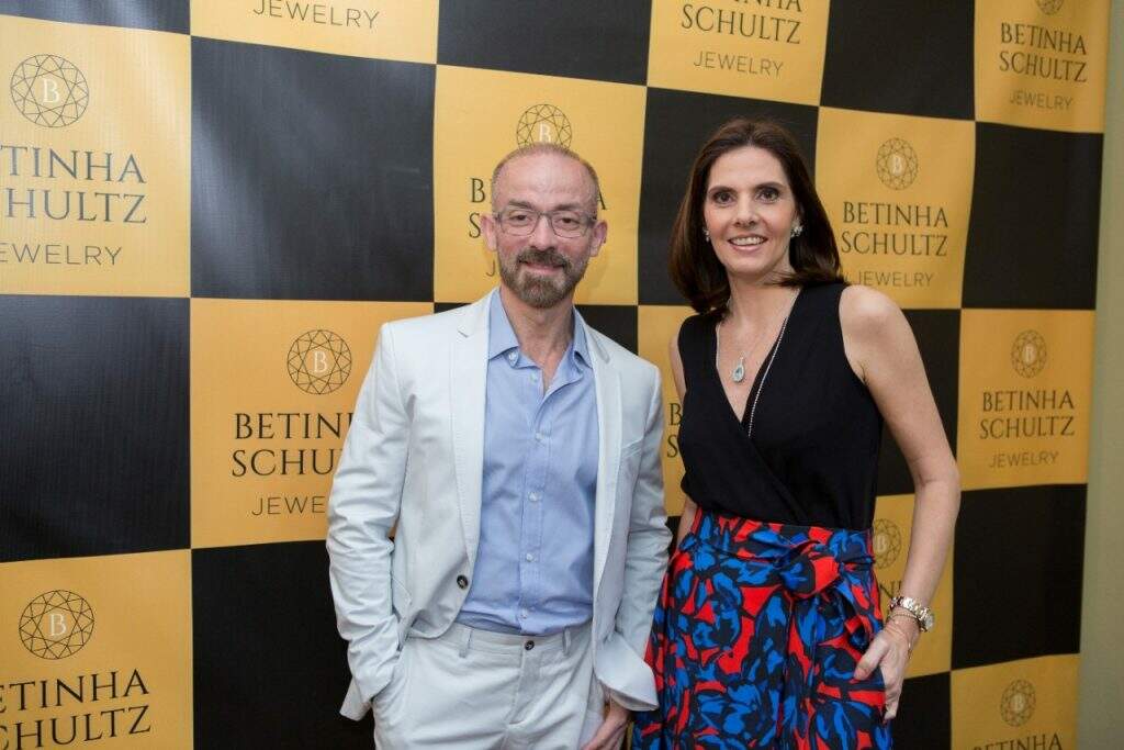 Betinha Schultz, que promoveu o lançamento da coleção Trésors, e Sérgio Pacheco. (Foto: Tiago Trindade/Divulgação)