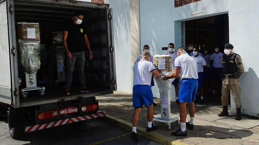Chegada de respiradores mecânicos em Minas Gerais.