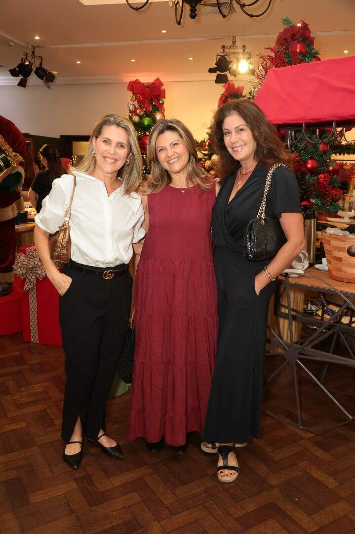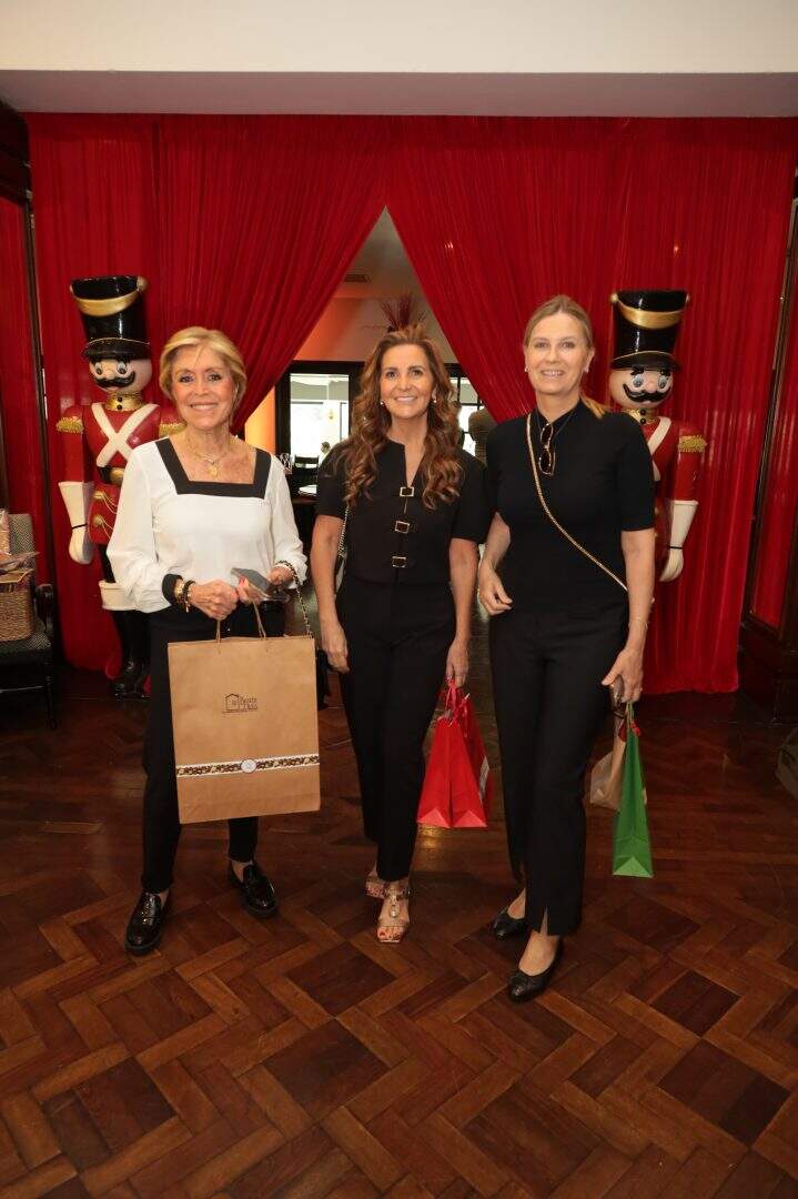 O colunista social Vitor Raskin, ao lado de Marta Hoffmann e Lúcia Suñé, recebe amigos e convidados no Bazar de Natal do Porto Alegre Country Club.