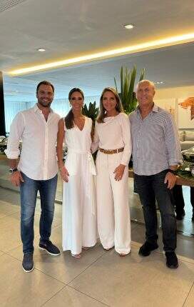 Julia Vasconcelos Jardim entre o marido, Thiago Reali, e os pais, Betina e Luis Paulo Linck Jardim