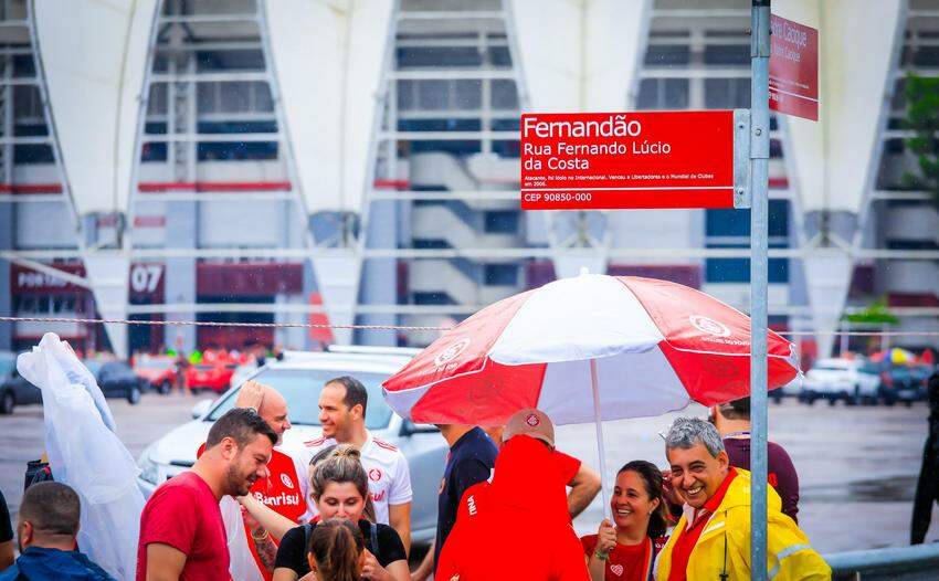 Foto: Alex Rocha/PMPAA prefeitura de Porto Alegre realizou a troca de placas em duas ruas próximas à Arena do Grêmio e ao Beira-Rio. No domingo (13), a ação ocorreu na rua Fernando Lúcio da Costa, no entorno do estádio do Inter, onde Fernandão (1978-2014), ídolo da torcida colorada, passou a ter uma placa nas cores vermelha e branca.