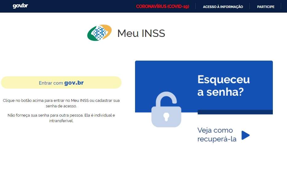 O Meu INSS agora está inserido no portal do governo federal, que unifica logins e senhas. Com isso, todos os acessos são feitos pela plataforma gov.br.