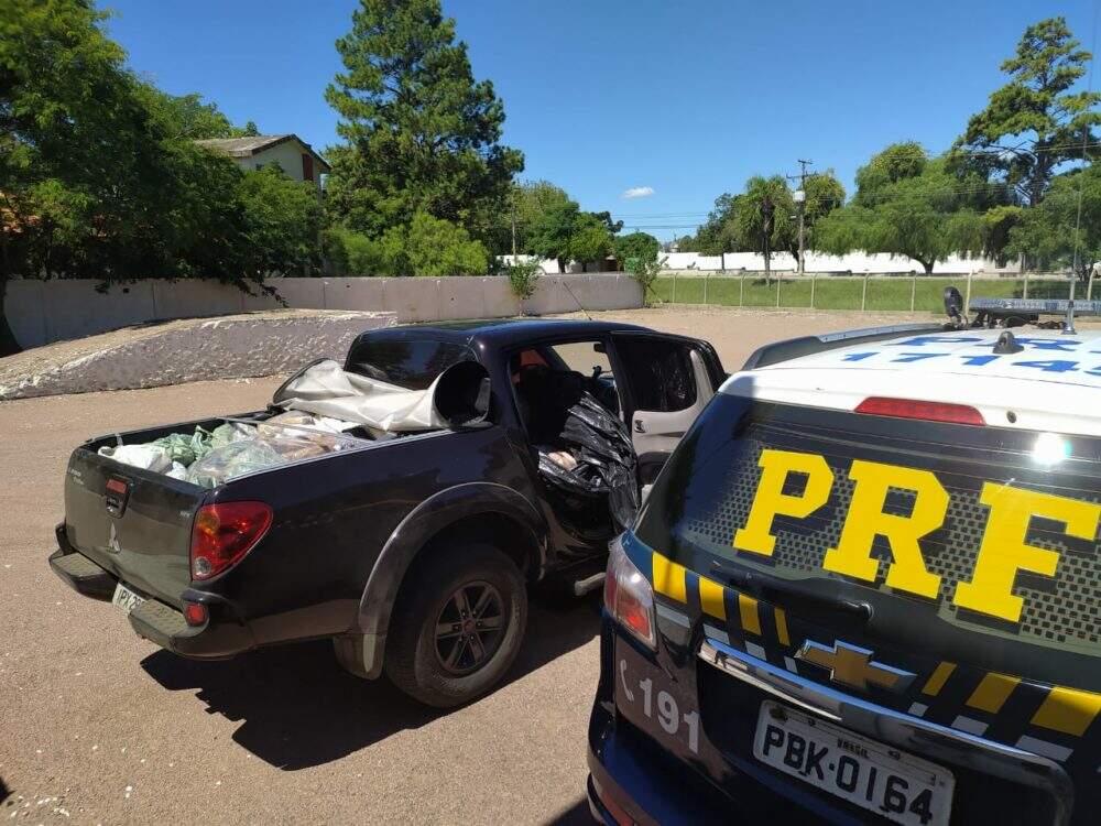 Durante policiamento ostensivo na rodovia, policiais rodoviários federais abordaram uma L200 com placas de São Leopoldo, que circulava pela rodovia.
