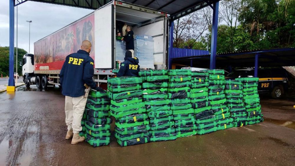 A PRF (Polícia Rodoviária Federal) apreendeu, na madrugada desta terça-feira (21), mais de uma tonelada de maconha na BR-386, em Sarandi, no Norte do Rio Grande do Sul. A droga estava escondida em um caminhão frigorífico que transportava carne de frango congelada.