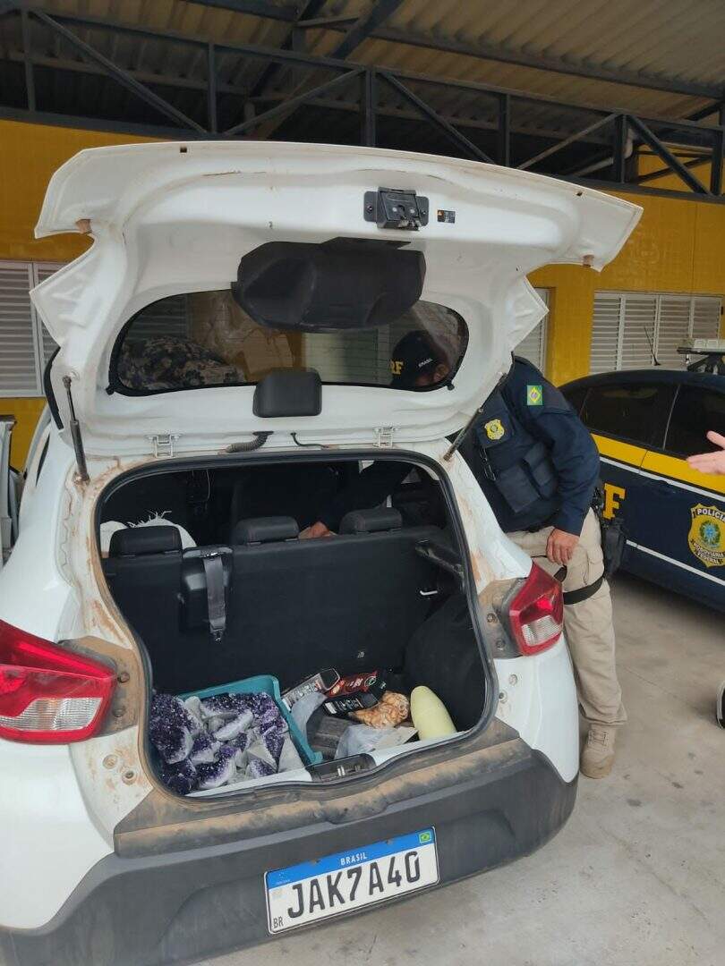 Durante ação de combate à criminalidade na BR-290, policiais rodoviários federais abordaram um Kwid emplacado em Xangri-lá. No interior do automóvel havia cerca de 200 quilos de ametistas, das quais não havia documento comprobatório de origem.