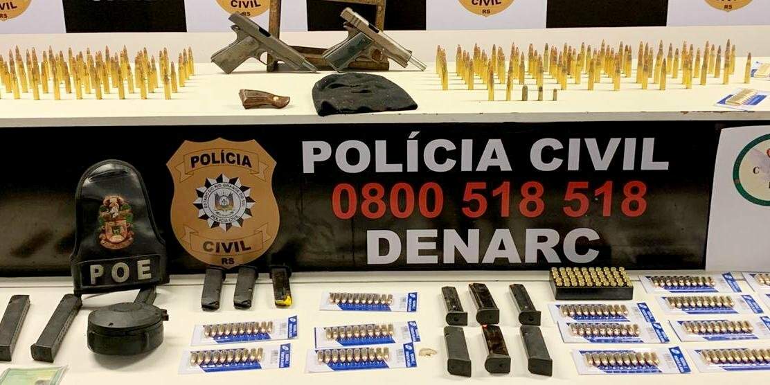 Houve a apreensão de 209 cartuchos de calibres variados, duas pistolas de calibres 45 e 11 carregadores diversos, além de touca ninja