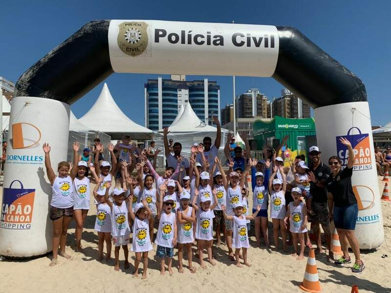 As crianças inscritas ganharam camisetas e bonés da Polícia Civil, uma cartilha para pintar ilustrações, além de medalhas fornecidas pela Secretaria do Esporte. As atividades fazem parte da programação da Operação RS Verão Total.