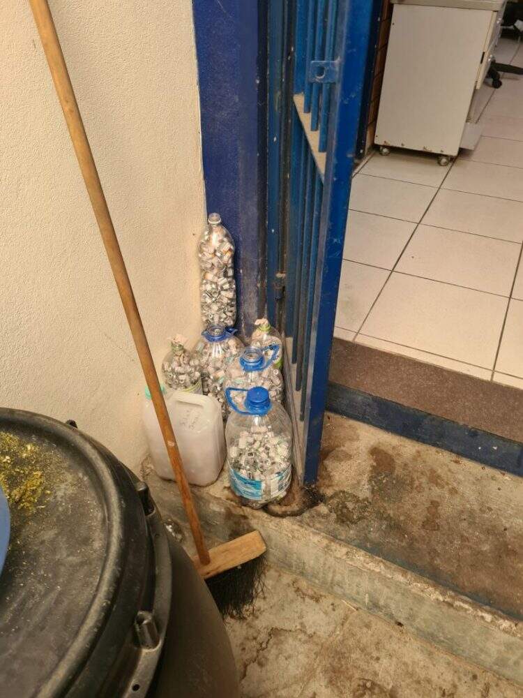 Durante as buscas, que foram acompanhadas por servidores da Secretaria de Saúde, também foram localizados frascos vazios de imunizante contra a Influenza, em um corredor de passagem.