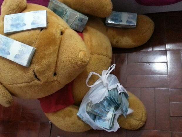 Um urso de pelúcia que escondia 300 mil dólares, em notas de real e dólar, foi apreendido pela PF (Polícia Federal) em uma casa em Balneário Camboriú, em Santa Catarina, nessa terça-feira. Vinte pessoas foram presas na operação Ex-câmbio, todas suspeitas de envolvimento em crimes financeiros. Outros 68 mandados de busca e apreensão integram a operação, que mobilizou 280 agentes. A ação ocorreu também no Rio Grande do Sul e no Paraná.