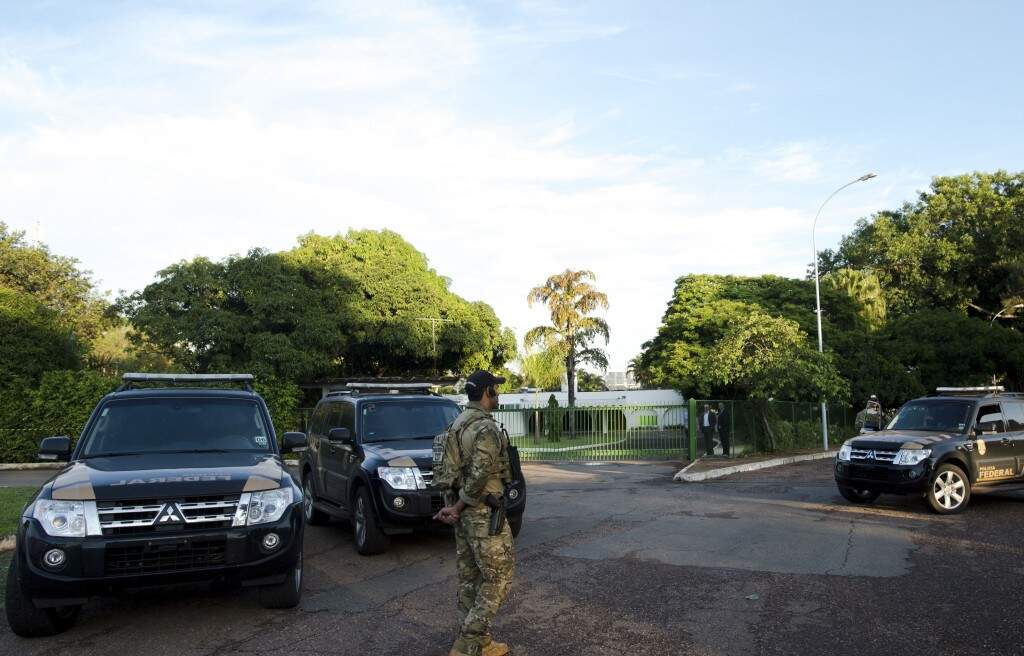Ao menos 12 policiais e três viaturas foram deslocados para a casa de Cunha na capital federal, que fica na Península dos Ministros. Entre os itens que foram apreendidos pela PF está o celular de Cunha.Também foram cumpridos mandados nas residências dos ministros Celso Pansera (Ciência e Tecnologia) e Henrique Eduardo Alves (Turismo), ambos do PMDB; do deputado Aníbal Gomes (PMDB-CE); do senador e ex-ministro Edison Lobão (PMDB-MA) e do senador Fernando Bezerra Coelho (PSB).