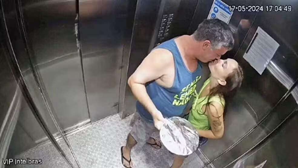 Ormond e Júlia descem de elevador com o brigadeirão com morfina.
