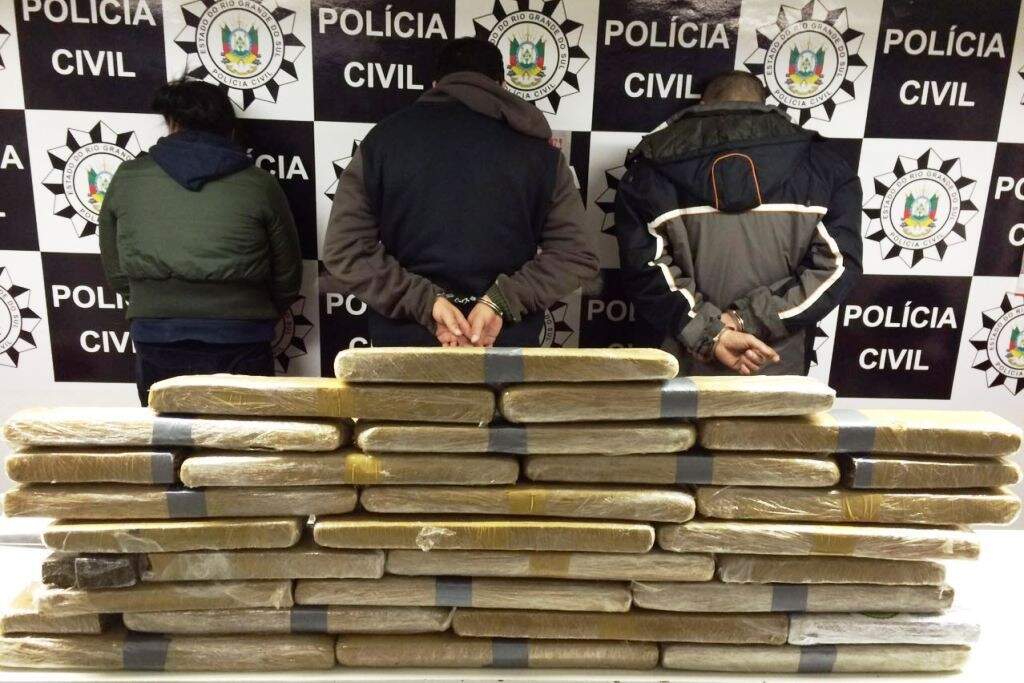 Uma mulher e dois homens foram presos na madrugada desta quarta-feira (18) com 30 quilos de maconha em um veículo Astra. O trio foi abordado por policiais civis da 1ª Delegacia de Investigações do Narcotráfico do Departamento Estadual de Investigações do Narcotráfico.