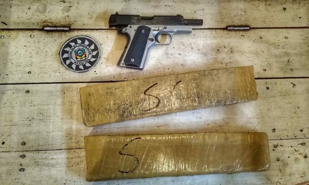 Também foram apreendidos 2kg de entorpecentes, uma pistola 380mm e uma espingarda cal.12.