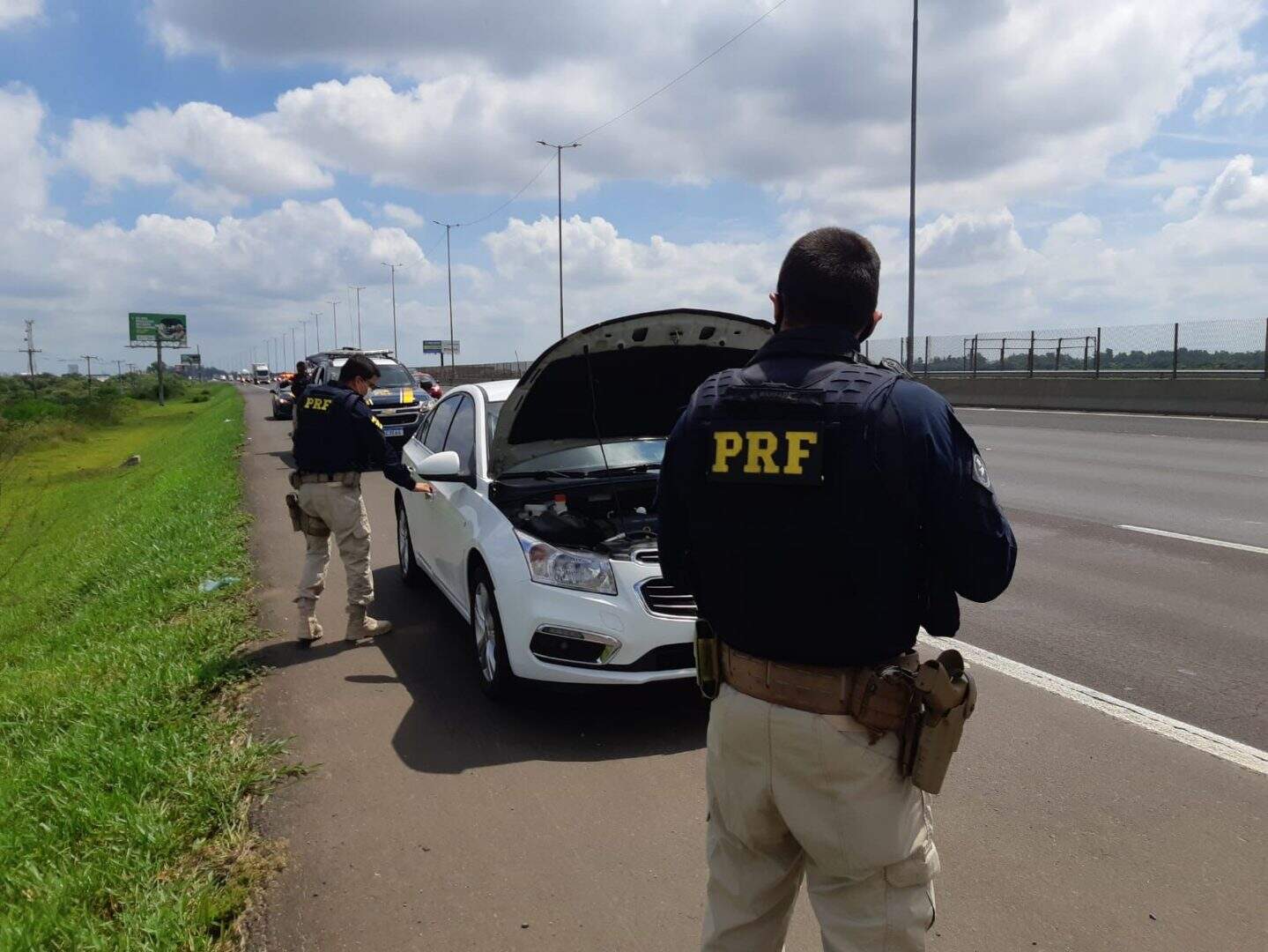 Foto: PRF/DivulgaçãoA PRF (Polícia Rodoviária Federal) prendeu, na tarde desta quarta-feira (02), dois homens e recuperou um carro que havia sido furtado em novembro de 2018. Os policiais estavam em patrulhamento quando abordaram um Cruze que trafegava pela BR-290, próximo à Avenida Assis Brasil, na Zona Norte de Porto Alegre.
