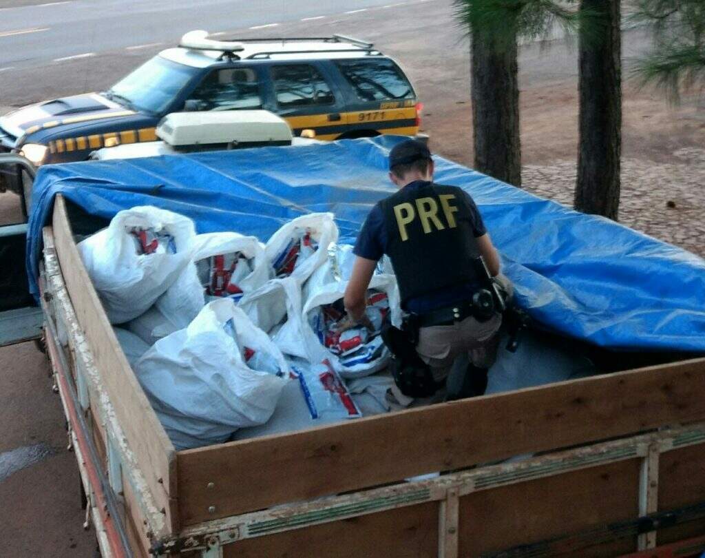 Durante fiscalização na BR-153, os policiais abordaram dois veículos Fiat Strada. Um deles transportava a carga e o outro atuava como batedor, avisando sobre a existência de blitz. Os motoristas foram presos em flagrante.