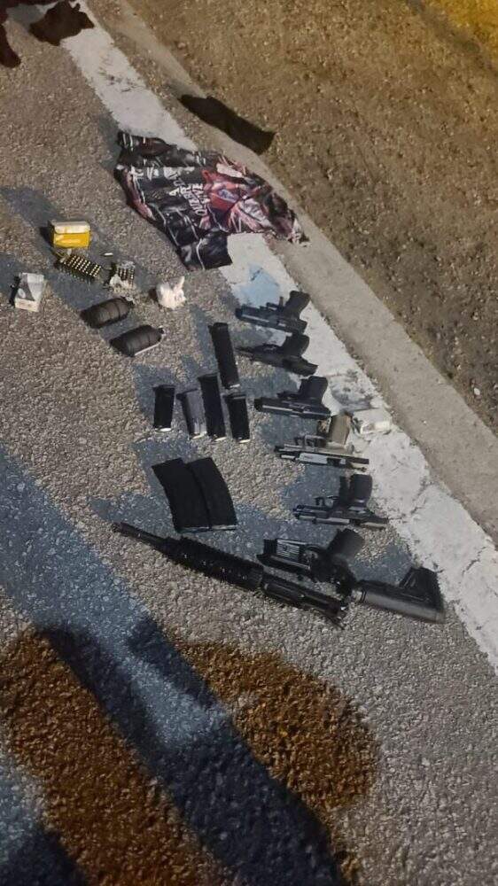 O veículo foi abordado pelos policiais rodoviários, que encontraram um compartimento oculto no painel, onde havia um fuzil calibre 556, duas granadas, cinco pistolas 9 milímetros, carregadores e grande quantidade de munição.