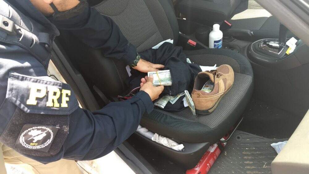 Ao abordarem o condutor de um carro com placas do município durante uma ação de combate à criminalidade na rodovia, na quinta-feira (22), os policiais perceberam que o motorista estava bastante apreensivo. Ao realizarem uma revista, os agentes encontraram o dinheiro escondidos nas meias e na jaqueta do motorista.