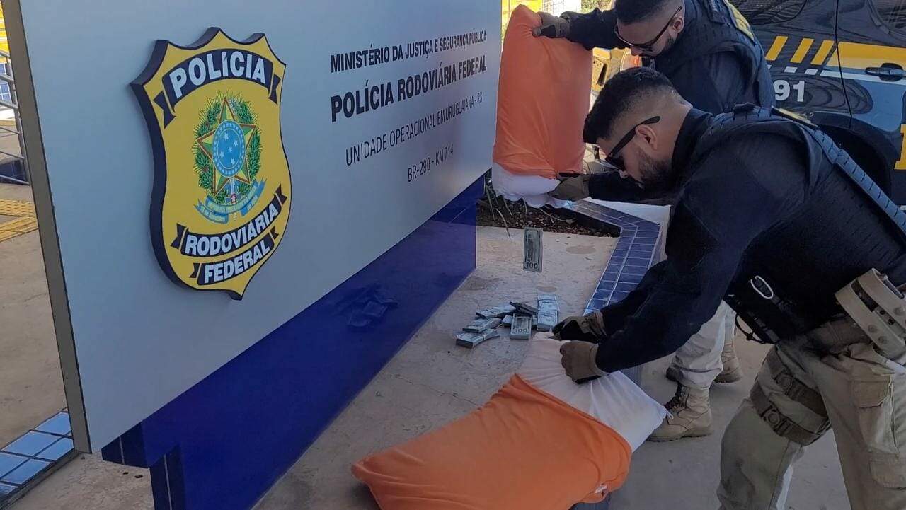 Durante a fiscalização, os agentes encontraram 180 mil dólares escondidos dentro de dois travesseiros. O motorista, de 44 anos, natural de Santa Maria e sua esposa, de 43, não conseguiram comprovar nem explicar a origem do dinheiro, que é equivalente a quase um milhão de reais no câmbio atual.