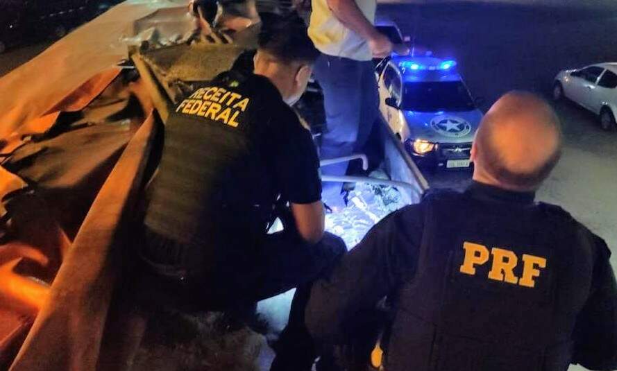 Durante ação conjunta, policiais rodoviários federais e agentes da Receita Federal abordaram uma carreta com placas de Santa Maria que transitava pela BR 290 e, ao vistoriarem o compartimento de carga, encontraram grande quantidade de peças de vestuário de origem estrangeira sem o devido desembaraço aduaneiro. As roupas estavam ocultas sob uma camada de sucata metálica.