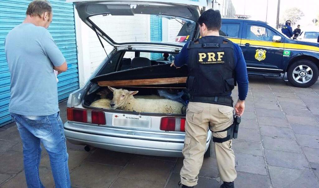 A PRF (Polícia Rodoviária Federal) flagrou na quarta-feira (4) um motorista transportando três ovelhas no porta-malas de um Escort, na BR-285, em Carazinho, no Norte do Rio Grande do Sul.