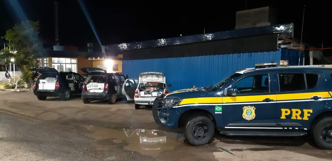 Foto: PRF/DivulgaçãoNa noite de quarta-feira (08), na BR 290 em Uruguaiana, na Região da Fronteira, a PRF (Polícia Rodoviária Federal) apreendeu três carros transportando grande quantidade de mercadorias introduzidas ilegalmente no país.