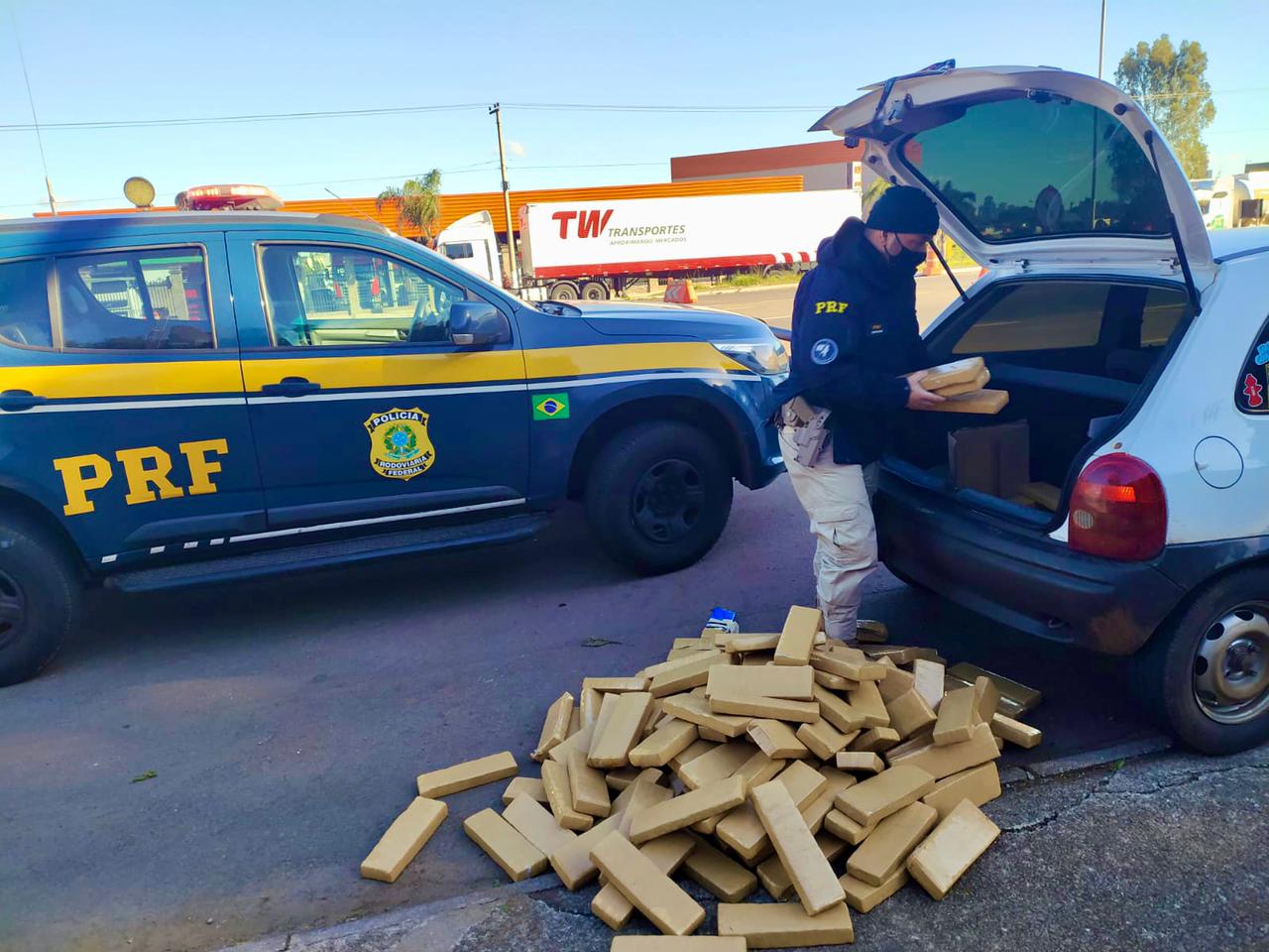 Foto: PRF/DivulgaçãoNa tarde deste domingo (18), na BR 285 em Passo Fundo, a Polícia Rodoviária Federal apreendeu uma carga de maconha que era transportada em um Corsa. Policiais abordaram o veículo que vinha de Santa Catarina. Um traficante foi preso na ação que contou com o apoio do serviço de inteligência.