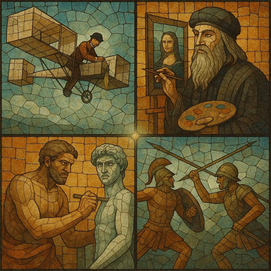 Vamos usar como exemplo o incomparável Leonardo da Vinci, um homem que nos falta adjetivos para descrevê-lo, pois foi pintor, inventor, engenheiro, músico, matemático, escritor, arquiteto, dentre outras coisas.