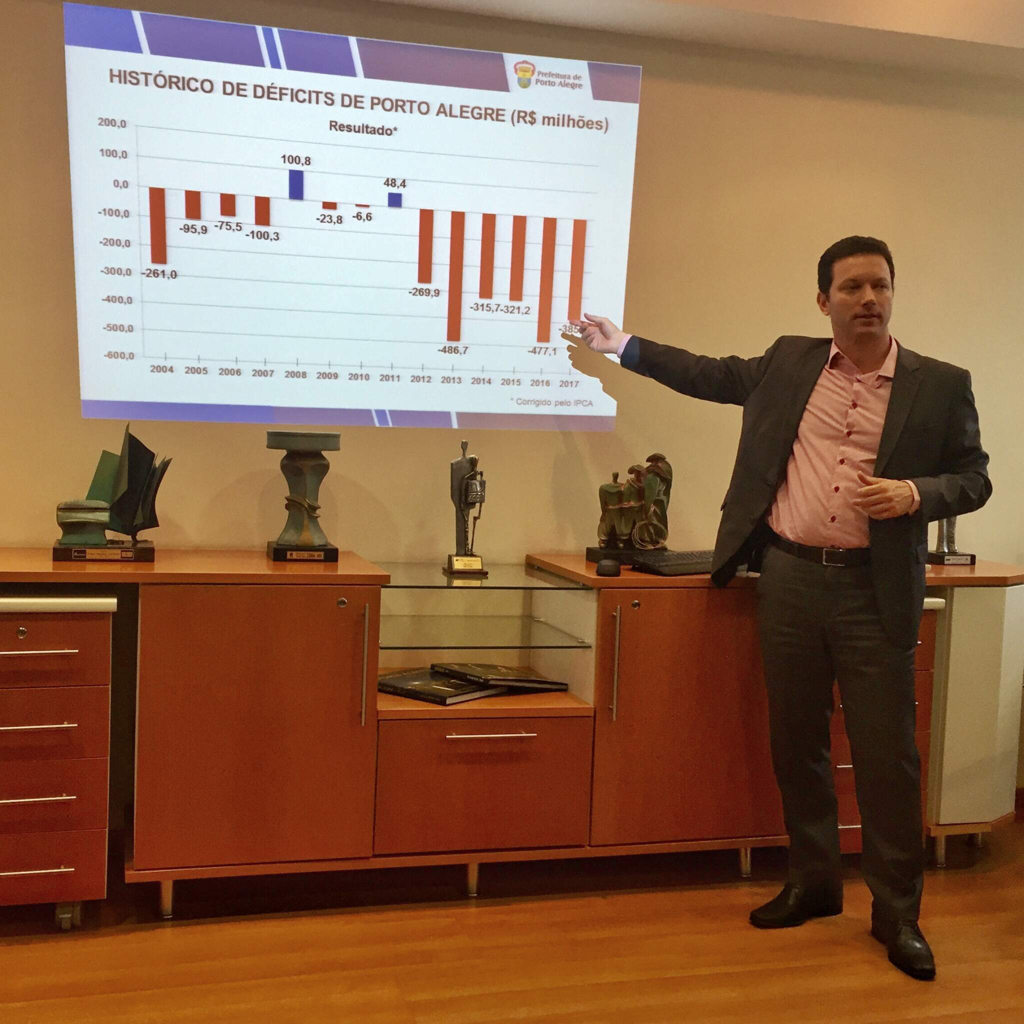 Marchezan ressaltou que o déficit nas contas da prefeitura de Porto Alegre é histórico e vem se repetindo há anos. De acordo com ele, o problema, apesar de existente, não era discutido antes da sua gestão nem foi debatido na campanha eleitoral. O prefeito disse que os governos estadual e federal não têm responsabilidade em relação a essa situação. “A culpa é nossa”, declarou, referindo-se ao município. A estimativa é de um déficit de mais de R$ 700 milhões nos cofres municipais em 2018.