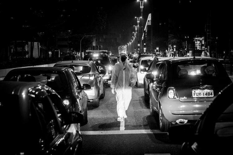 Uma centena de motoristas-participantes conduzem seus automóveis em um trajeto real e em marcha ré, que “parte” da avenida Paulista e “termina” no Cemitério da Consolação. O cortejo é conduzido pelo som de respiradores, em uma sonoplastia que simboliza os milhares de mortos pela Covid-19 no Brasil.