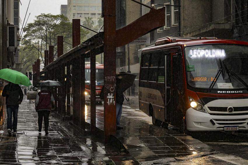 A previsão indica o dia mais instável da semana, com chuva persistente, descargas elétricas e acumulados de até 60 milímetros. Os ventos sopram de leste, com média de 27 km/h e rajadas que podem passar de 60 km/h. As temperaturas oscilam entre 16°C e 19°C.
