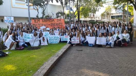 Médicos e estudantes de Medicina protestaram pela manutenção do setor materno-infantil do Hospital São Lucas.