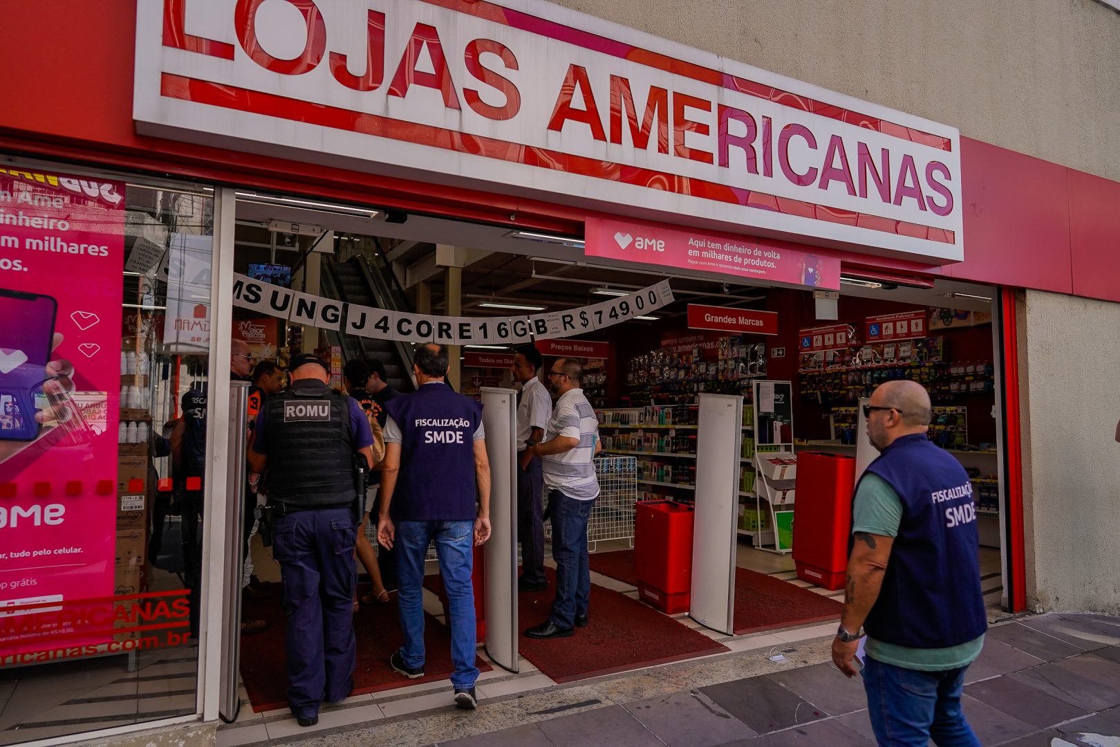 Foto: Cesar Lopes/PMPAA Prefeitura de Porto Alegre interditou duas lojas Americanas no Centro e uma no Shopping Total, no bairro Independência, nesta terça-feira (24). Agentes de fiscalização da SMDE (Secretaria Municipal de Desenvolvimento Econômico), com o apoio da Guarda Municipal, interditaram as lojas da rua dos Andradas e da rua Dr. Flores, além da localizada no shopping, por risco iminente à saúde coletiva durante o período de combate ao coronavírus no município. O decreto nº 20.516, assinado pelo prefeito Nelson Marchezan Júnior, proíbe a atividade de padarias, restaurantes, bares, lancherias e similares, exceto serviços de tele-entrega (delivery) ou pegue e leve (take away). O dispositivo restringe atividades que foram identificadas nas lojas interditadas, como venda de brinquedos, eletroeletrônicos, vestuário e bomboniere. As multas variam de R$ 356 a R$ 1.784.