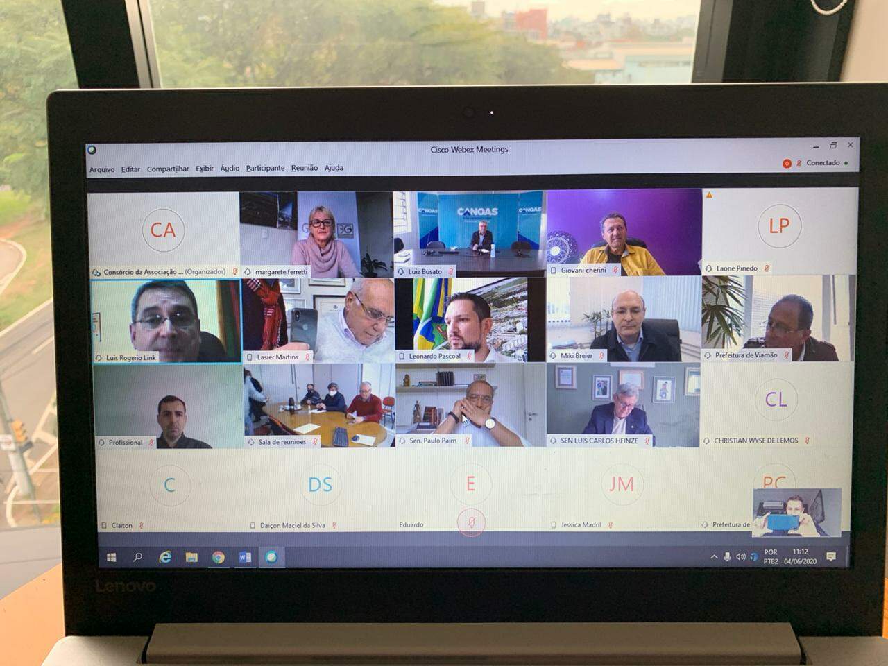 Foto: ReproduçãoPrefeitos da Região Metropolitana de Porto Alegre reuniram-se virtualmente nesta quinta-feira (4) com os três senadores gaúchos – Lasier Martins (Podemos), Luis Carlos Heinze (Progressistas) e Paulo Paim (PT) – e o deputado federal Giovani Cherini (PL), líder da bancada na Câmara. O encontro, promovido pela Granpal (Associação de Municípios da Região Metropolitana de Porto Alegre), posicionou os parlamentares sobre a necessidade da destinação célere dos recursos da União para o enfrentamento da pandemia.