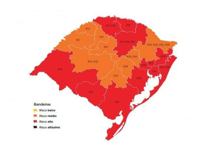 Por sua vez, as regiões de Porto Alegre, Canoas, Novo Hamburgo, Taquara e Passo Fundo estavam sob bandeira vermelha na rodada anterior e foram mantidas com tal status. Já a área de Lajeado apresentou melhora nos indicadores e reduziu para a cor laranja.